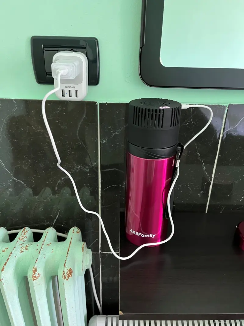 Still, I knew I needed a long-term solution for the months we’d be on the road. Budget accommodation like hostels often meant unreliable fridges, or no fridge at all! So, I started digging deeper into portable fridge options and found a compact medical-grade cooler online. It looks like a mini thermos fridge, designed to maintain the temperature range needed and run off multiple power sources, including a power bank. That fridge became one of the most important products of our entire trip.